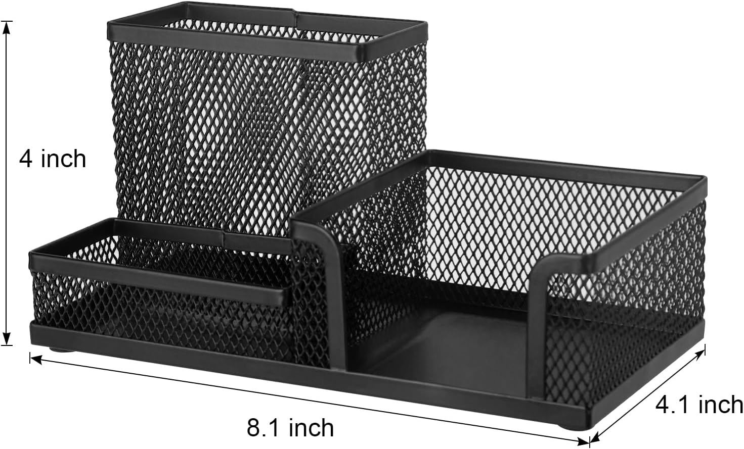 Comix Mesh Pen Pencil Holder Desk Organizer, 3 Compartment Wire Desktop Pen Pencil Cup Caddy Office Supplies Accessories for Home Office School, Black(2 Pack)
